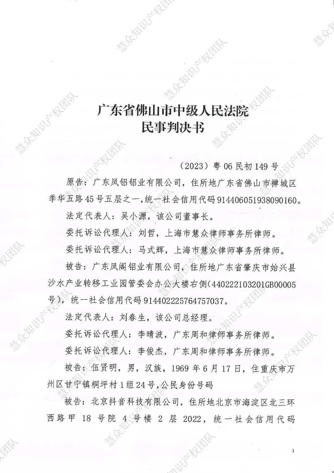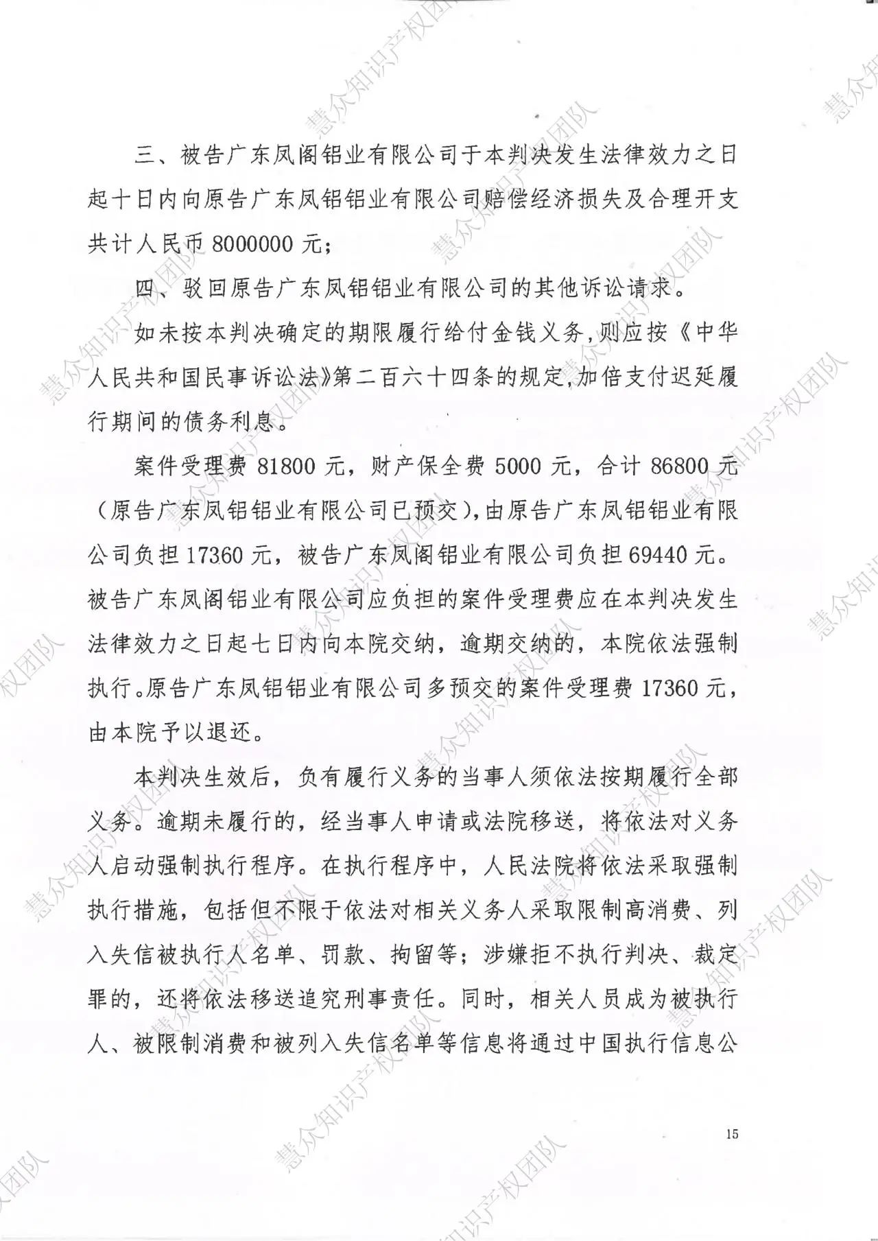 漯河判赔800万!辉知队代理“凤铝”商标维权案胜诉